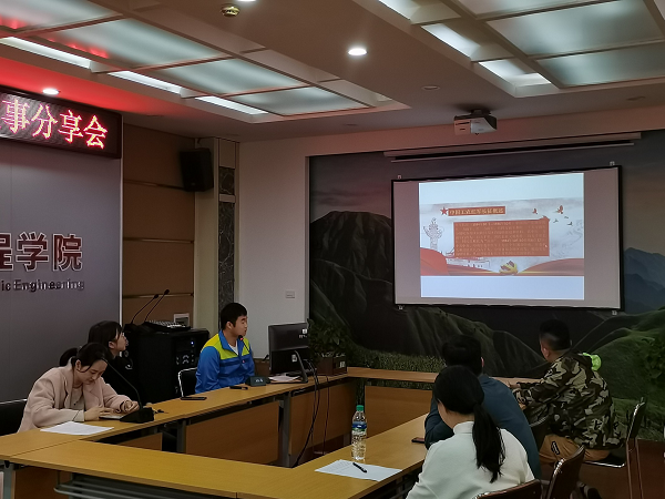 陆玉锋同学给大家分享了红军“两万五千里长征”的历史故事,长征中每一支队伍的具体路线长征距离;长征中出现的一组组令人惊叹的数字、一次次著名的战役和一个个令人心疼的故事,在他的分享下重新呈现在大家面前。吴俊同学给大家分享了“生的伟大、死的光荣”的刘胡兰烈士的故事,在分享中,他播放了刘胡兰烈士英勇就义时的电影片段,刘胡兰烈士从容地走向铡刀的片段,深深的触动了大家的心。张剑敏同学给大家分享了著名的“淮海战役”故事。