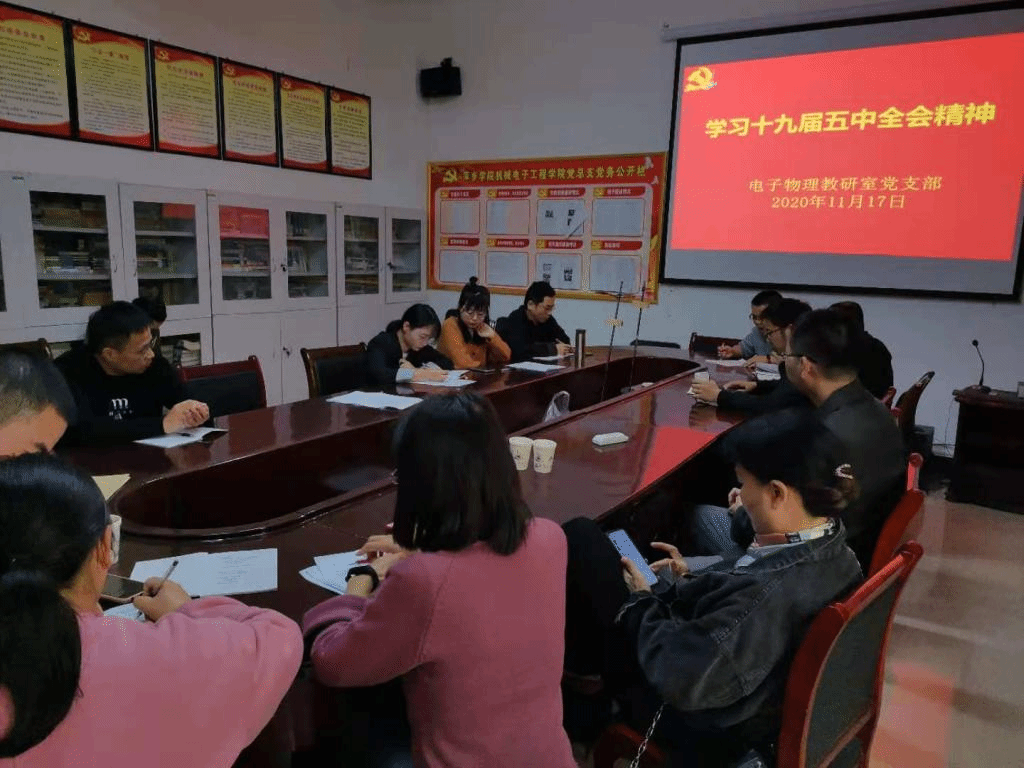 11月17日,bevictor伟德电子物理教研室党支部在2216党员活动室组织召开党员大会,学习习近平总书记在第十九届中国共产党中央委员会全体会议的讲话精神。中国共产党第十九届中央委员会第五次全体会议,于2020年10月26日至29日在北京举行。