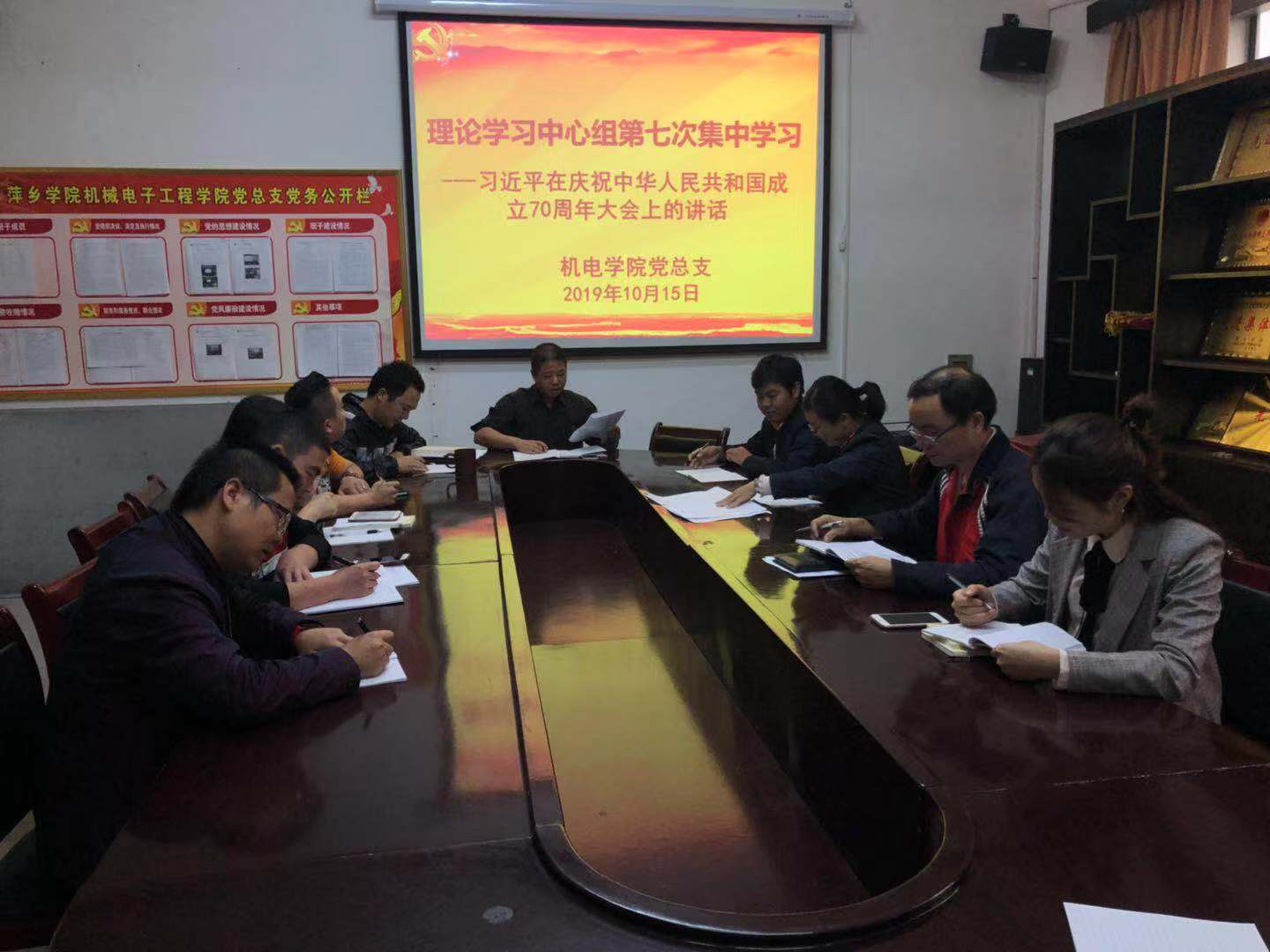 2019年10月15日,机械电子工程公司理论学习中心组召开专题学习会议,学习习近平总书记在庆祝中华人民共和国成立70周年大会上的讲话精神。公司党总支书记王斌主持会议,公司理论中心组成员参加。
