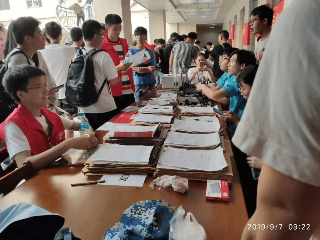 9月7、8日是2019级新生入学注册报到时间,在这期间,员工党员及入党积极分子身穿红色志愿者服装帮助新生进行入学报到程序。酷热的太阳底下,随处可见他们奔走的身影,帮忙提行李、端茶倒水给员工家长……他们亮出了员工党员的风采,极大的体现了党员与入党积极分子的热情与风貌。