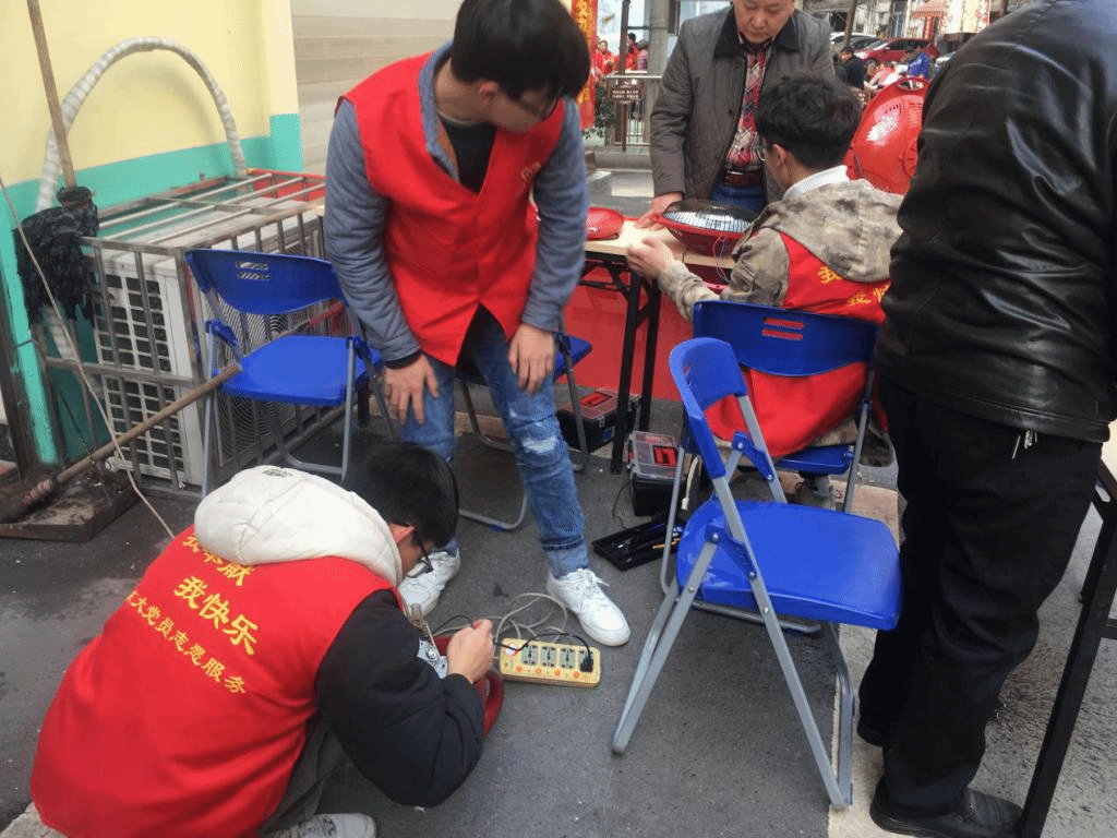 活动现场,同学们热情饱满,任劳任怨,利用自己的专业特长,为社区居民进行义务家电维修。此次活动共累计为社区居民维修小家电20余件。得到了社区居民的广泛好评,纷纷为我们的老员工点赞。