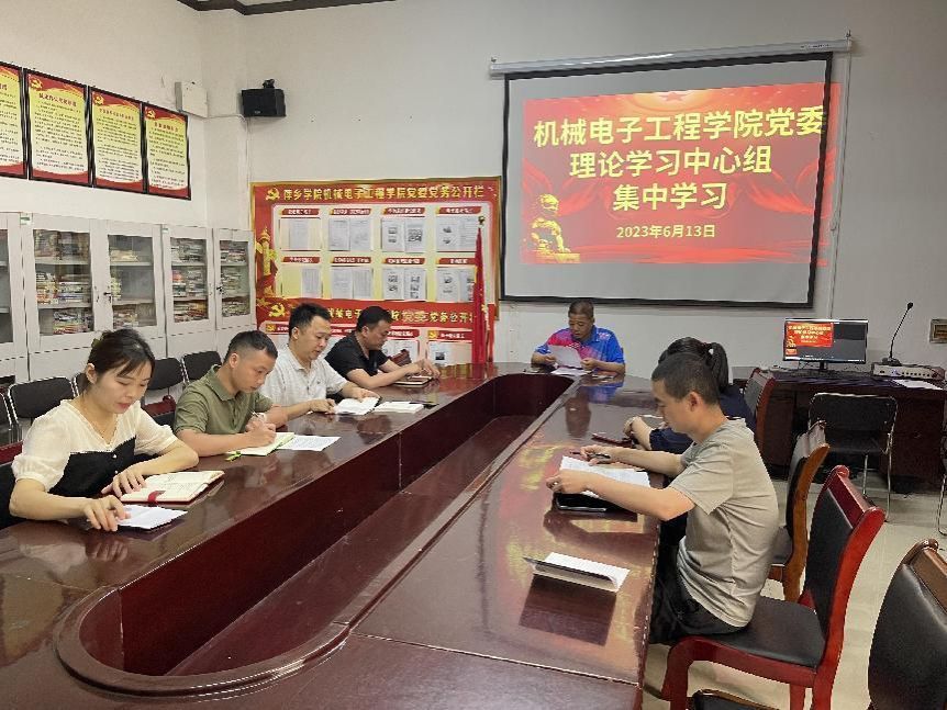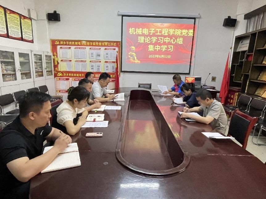 6月13日上午,机械电子工程公司在鼎新楼2216党员活动室召开党委理论学习中心组学习会,专题学习习近平在中共中央政治局第五次集体学习时的重要讲话精神以及省长叶建春在江西农业大学形势报告会暨专题党课上的讲话精神。公司党政班子成员出席会议,学前教育公司张沙老师列席会议,学习会由公司党委书记王斌主持。