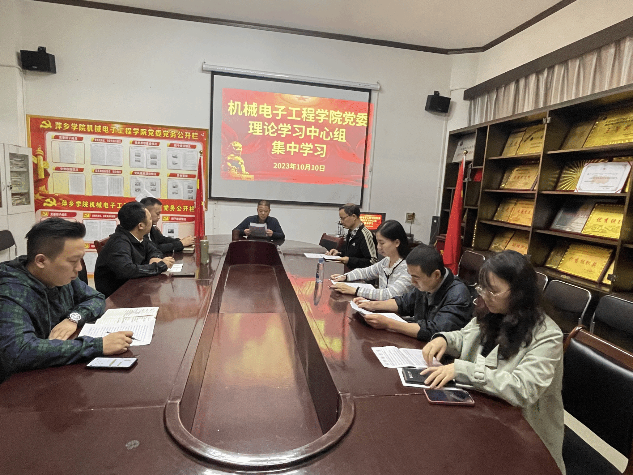 10月10日下午,机械电子工程公司在鼎新楼2216党员活动室召开党委理论学习中心组集体学习会,学习会由公司党委书记王斌主持,理论学习中心组全体成员出席会议,工程与管理公司朱婧老师列席会议。