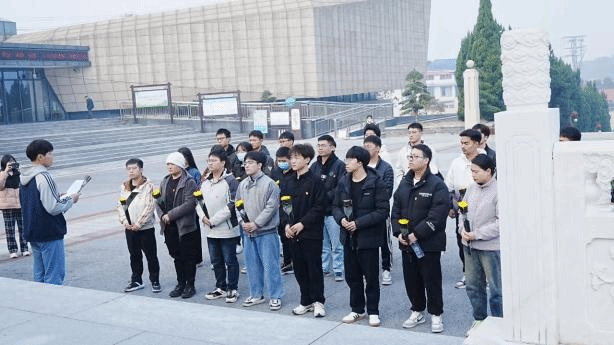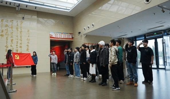 接着,在参观完后,机电公司员工第一、第二党支部全体党员带领2023年12月新发展的党员,在烈士纪念馆中,佩戴党徽,面向党旗进行了庄严的入党宣誓仪式。