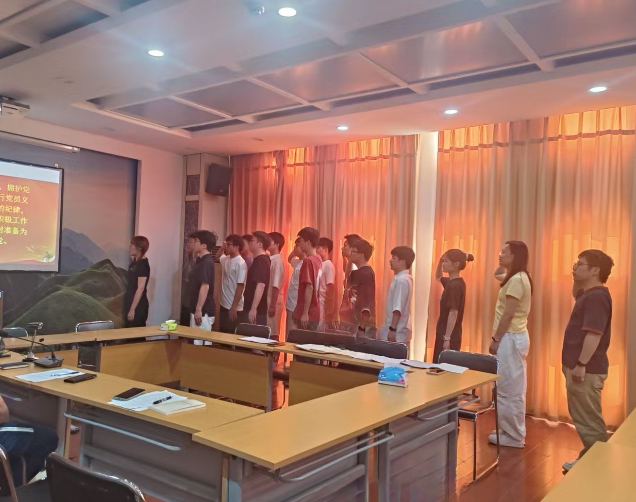 政治生日标志着党员政治生命的开始,记住它,是对信仰的承诺,庆祝它,是对初心的重温。在誓言重温守初心环节,全体毕业生党员面向党旗,高举右拳,在党支部书记的带领下重温入党誓词。“我志愿加入中国共产党……”铿锵有力的誓言回荡在会场,彰显着青年党员对党的忠诚与担当。毕业生党员代表万乐峰表示:“每一次宣誓都是精神的洗礼,未来无论身在何处,都将以行动践行誓言。”徽章闪耀,传承红色基因担使命。在“徽章传承”环节,毕业生党员代表为低年级党员佩戴党徽,一枚枚党徽承载着老党员对新党员的殷切期望,也象征着红色精神的代代相传。