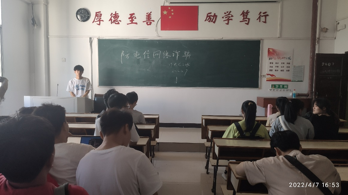 2022年4月8日,为响应公司平安建设活动月主题宣传活动,增强员工防诈骗意识,杜绝校园内电信诈骗事件的发生,电子信息工程1902班在鼎新楼开展了“防范电信网络诈骗”安全教育主题班会。