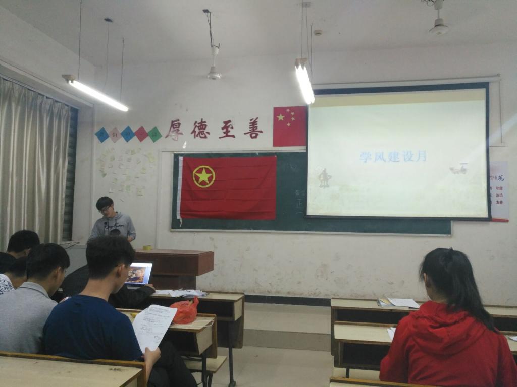 2018年4月22日19点,机电公司17电信一班在鼎新楼2316教室开展了一次“学风建设”动员大会,参加本次活动17电信一班的全体同学和员工会成员代表