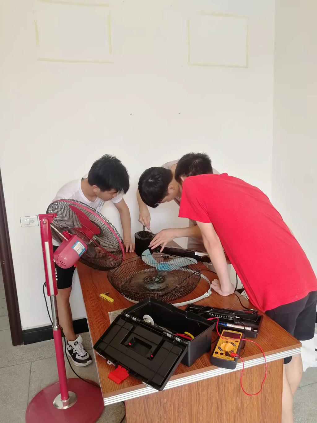 2019年7月17日,bevictor伟德老员工暑期“三下乡”社会实践服务队在实践基地上栗县东源乡宫江村开展了以“科学技术出机电,义务维修行乡村”为主题的义务维修活动。