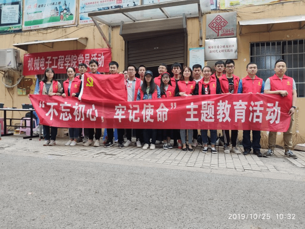 10月25日,机械电子工程公司十多名师生党员在机电公司员工党支部的组织下来到城郊管委会横龙社区开展 “不忘初心,牢记使命”主题教育活动,进行义务维修及清扫志愿活动。