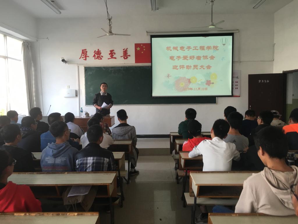 进一步全面落实迎评冲刺工作,扎实做好动员工作,2019年11月10日下午,电子爱好者协会在鼎新楼2316举行了迎评动员大会。动员大会由协会指导老师胡子健主持。