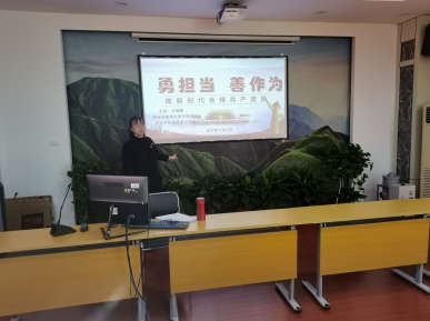 2021年11月12日中午,在鼎新楼2200会议室,由萍乡市“两优一先”获得者、萍乡市优秀党务工作者占丽娜老师,给机电公司入党积极分子上了一堂精彩的党课,本次党课围绕“‵勇担当,善作为′做新时代合格党员”主题开展。
