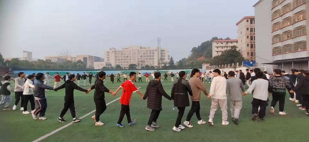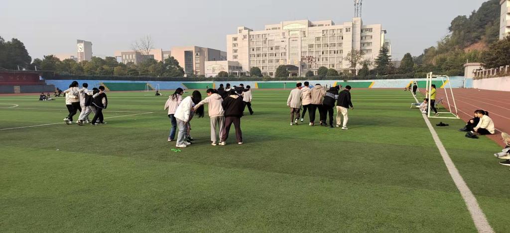 首先由主持人介绍活动的规则,活动包含“三人两足”和“踩报纸”等项目。同学有序地参与了这几个小游戏,整个素质拓展开展地非常顺利。