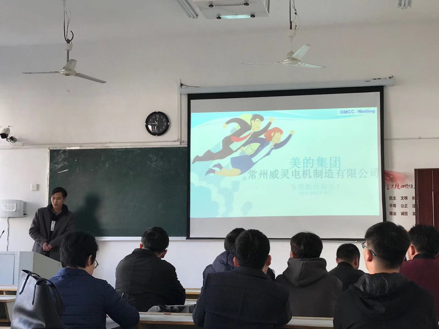 2019年12月7日上午,机电公司于2216教室召开美的集团常州威灵电机制造有限公司专场招聘会,2020届机械设计制造及其自动化、电子信息工程专业毕业生参加了招聘会。