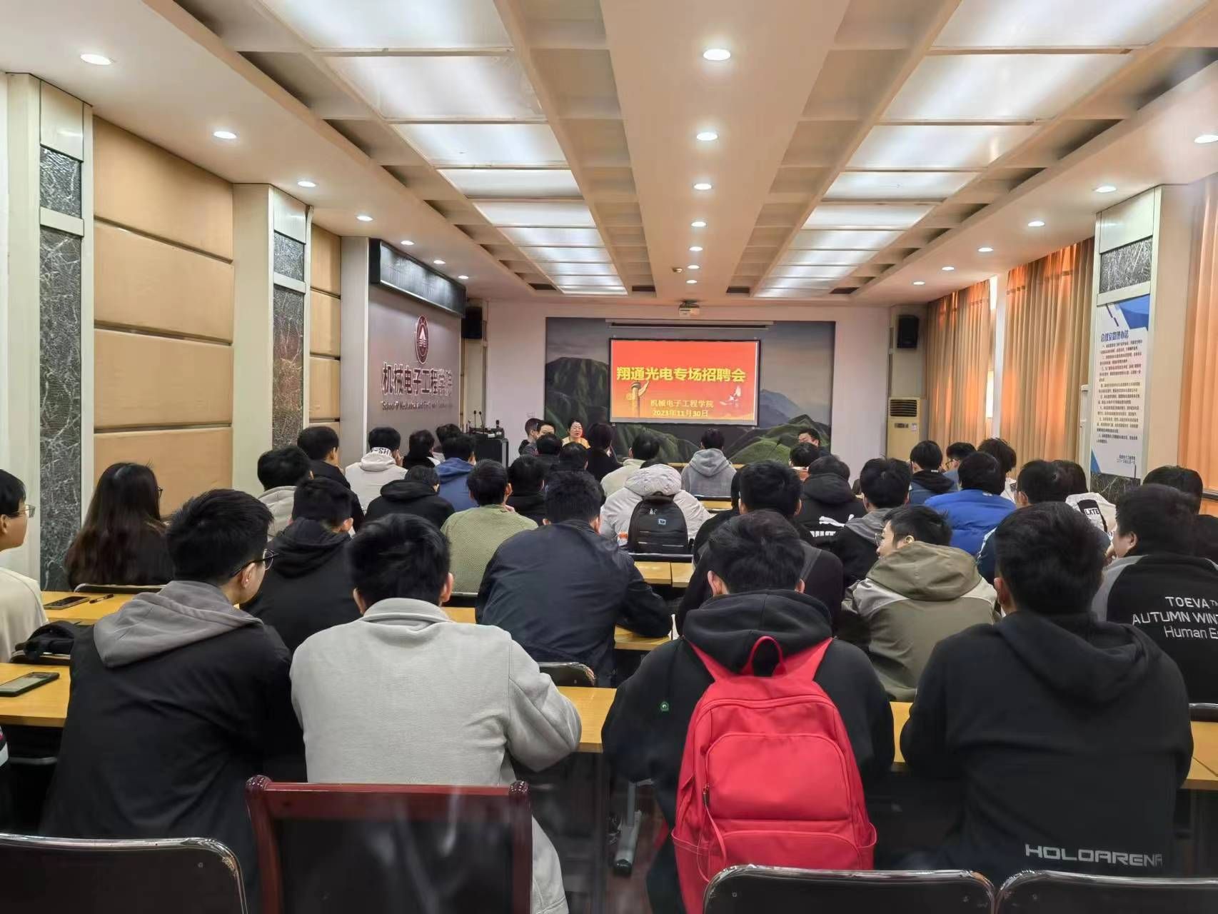 2023年11月30日,中航翔通光电技术有限公司人事行政部部长农艺艳携光无源组件经理贾绍睿、工程部产品经理郭琪一行来到bevictor伟德,为2024届毕业生举行现场招聘宣讲会。这是中航翔通光电技术有限公司首次来到伟德国际体育官网进行毕业生专场招聘。招聘宣讲会现场异常火爆,机电公司的毕业生积极前往参与。