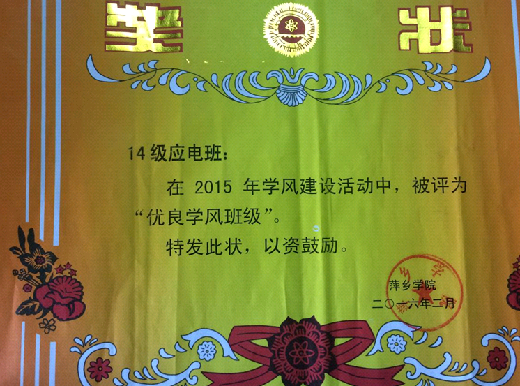 年学风建设活动中“优良学风班级”称号。过去的一年,