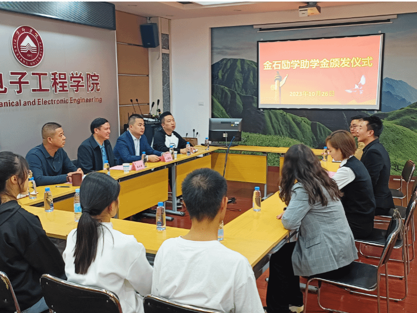 爱心捐资助学,情暖莘莘学子。10月26日上午,江西金石三维智能制造科技有限公司“金石励学助学金”颁发仪式在鼎新楼2200会议室举行。公司总经理王小博、行政经理杨婷、公司党委委员、副董事长陈永国、学工处处长江惺俊、bevictor伟德班子成员、教师代表与受助员工共同出席,见证了这场爱心传递仪式。仪式由公司党委书记王斌主持。