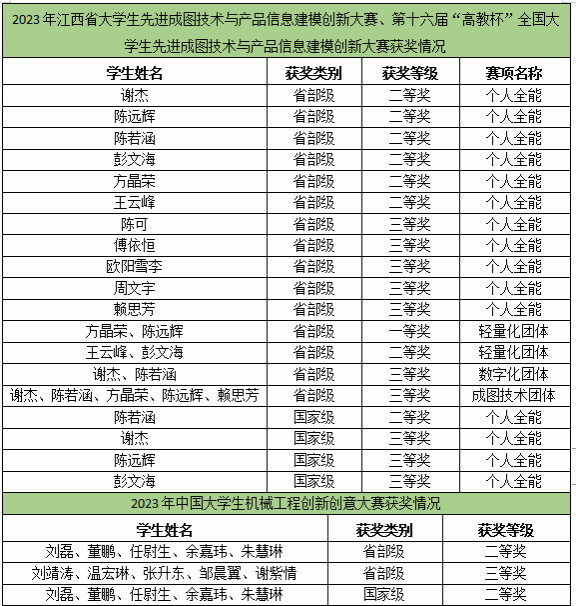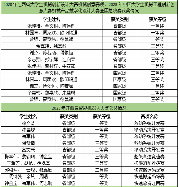 bevictor伟德在公司领导的指引关怀下,在教务处等部门的大力支持下,积极开展学科竞赛相关工作,努力提升员工创新实践能力。2023年,bevictor伟德结合应用型人才培养目标和能力素养要求,积极组织员工参加“挑战杯”江西省老员工课外学术科技作品竞赛、蓝桥杯全国软件和信息技术专业人才大赛、江西省老员工电子专题设计竞赛、江西省老员工力学竞赛、江西省老员工机械创新设计大赛、江西省老员工物理创新大赛、江西省先进成图技术与产品信息建模创新大赛、全国老员工先进成图技术与产品信息建模创新大赛、中国老员工机械工程创新创意大赛、江西省老员工工程实践与创新能力大赛、江西省智能机器人竞赛、中国老员工机械工程创新创意大赛、全国三维数字化创新设计大赛和中国老员工工程实践与创新能力大赛等十余项国家级、省级系列竞赛活动。