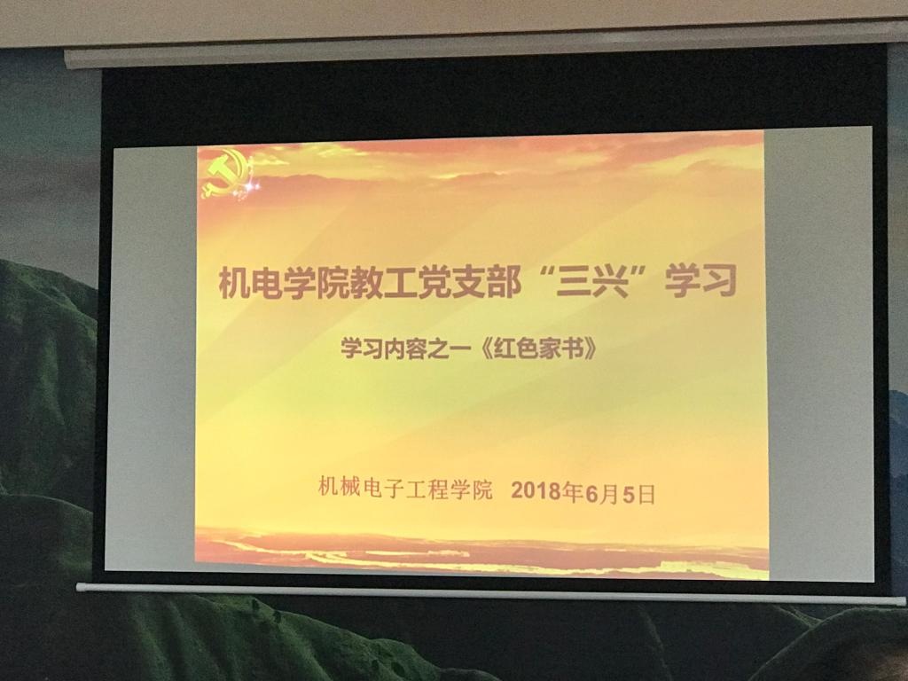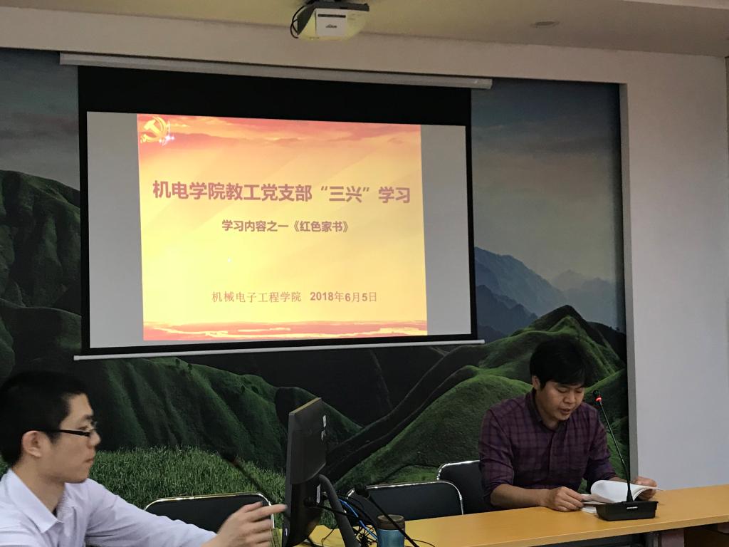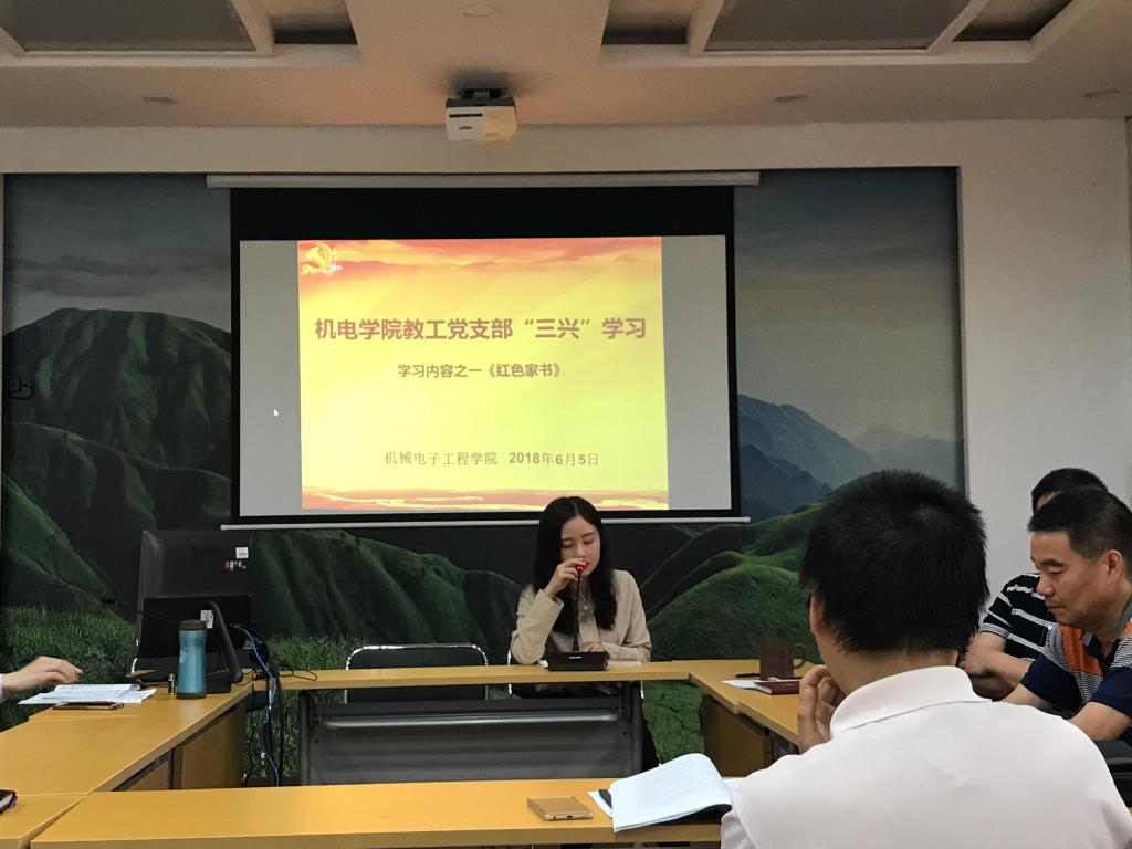 近日,省委书记、省长刘奇向全省党员干部推荐《红色家书》一书,要求全省党员干部“认真读一读红色家书”。机电公司教工党支部积极响应,结合公司“三兴”活动精神,于2018年6月5日下午在鼎新楼2201会议室开展红色家书诵读暨心得交流会,掀起红色家书学习讨论热潮。