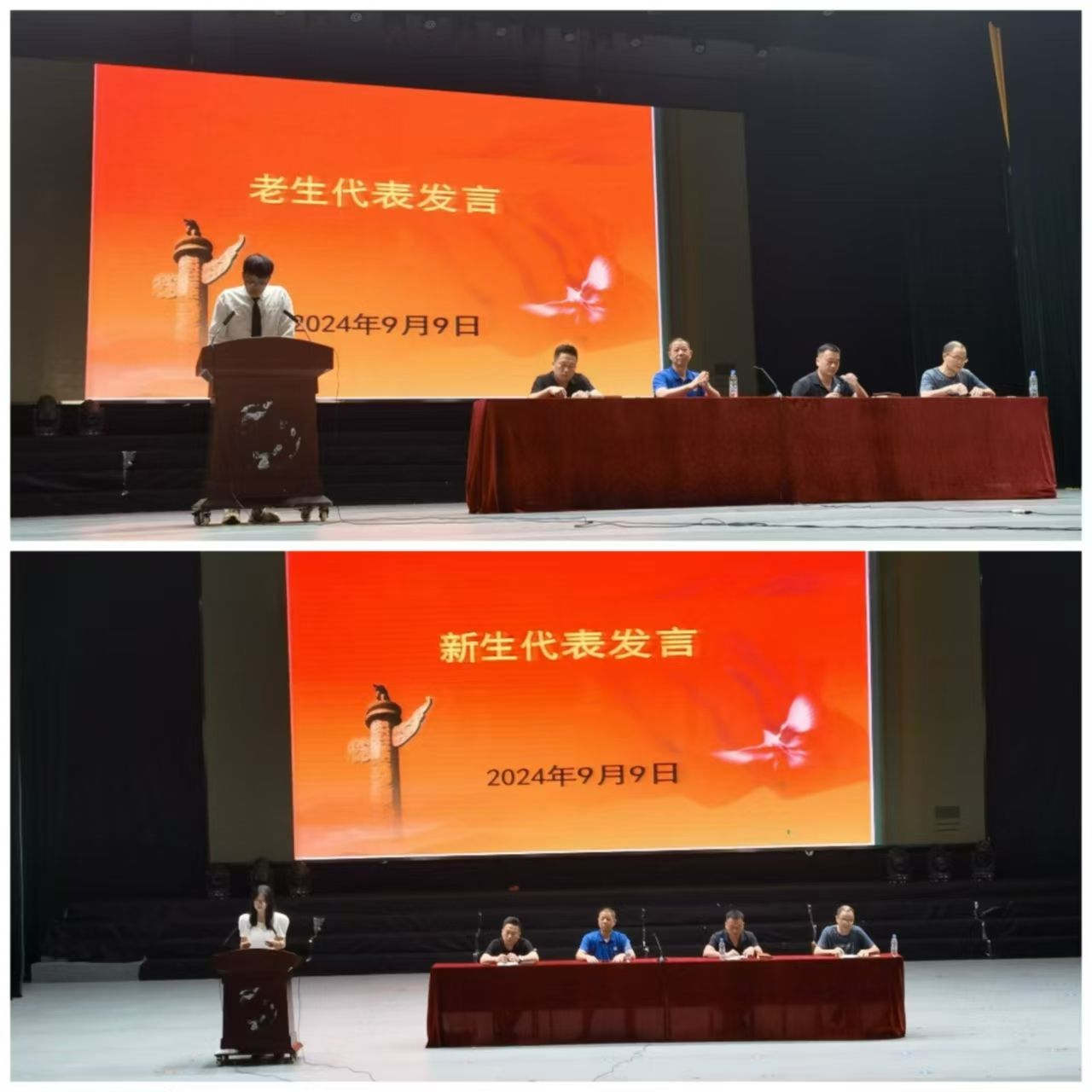 在校生代表2023级机械设计制造及其自动化专业罗旺传同学向学弟学妹们分享了关于个人成长的思考,他鼓励同学们积极进取,保持不断学习的兴趣,不畏失败,坚定前行,以最昂扬的姿态拥抱即将开启的老员工活。2024级电子信息工程专业涂慧琳作为新生代表发言,她分享了自己的求学感悟,希望大家深化思考,迎接挑战,以饱满的热情和积极的态度持续努力奋斗。