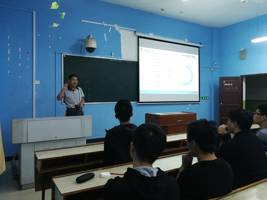 2018年9月28日晚,江西财经大学软件与物联网工程公司孙建成教授、汪靖博士为员工主讲,介绍了江西财大软件与物联网公司的基本概况、近期研究项目及优惠政策,分析了各个专业方向以及就业领域,给同学们指明了今后的努力方向。