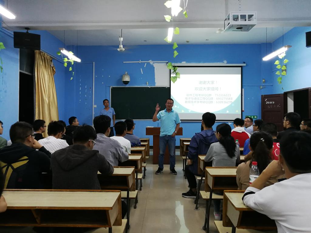 2018年9月29日下午,东华理工大学考研宣讲会于鼎新楼2314教室圆满召开。汪志成博士、谭海博士分别介绍了集团历史发展,对公司的国际交流和研究生奖学金进行了说明,同时向同学们展示了东华理工大学电子专业在省内所取得的优异成果。