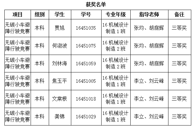bevictor伟德组建团队,校内初选员工代表参加比赛中的“无碳小车避障行驶竞赛”项目竞赛,由何萍、张均、胡庭辉、李立、刘云峰老师对参赛员工进行理论指导和实践指导。最终,贾旭、何淑波、刘林海、焦玉平、文棠根、龚锦六位同学摘得2项三等奖。