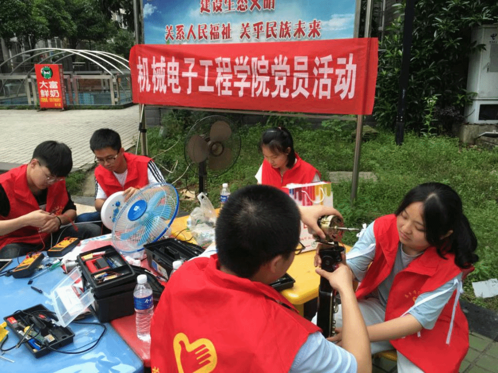 为充分发挥党员先锋模范作用,切实提高广大党员引领和实践科学发展的能力,2019年5月21日,在公司党总支统筹安排下,机电公司教工党支部组织党员走进萍乡市安源区城郊管委会横龙社区开展“义务维修进社区”主题党日活动。