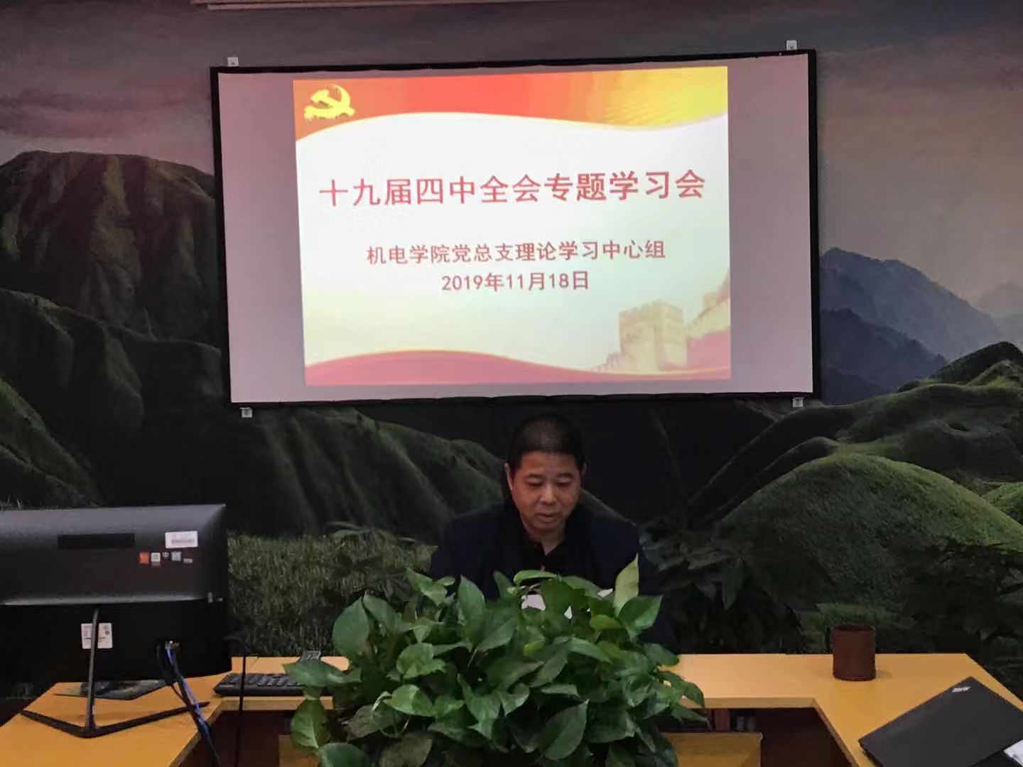 2019年11月18日,机械电子工程公司理论学习中心组召开专题会议,学习十九届四中全会精神。公司党总支书记王斌主持会议,公司理论中心组成员参加。
