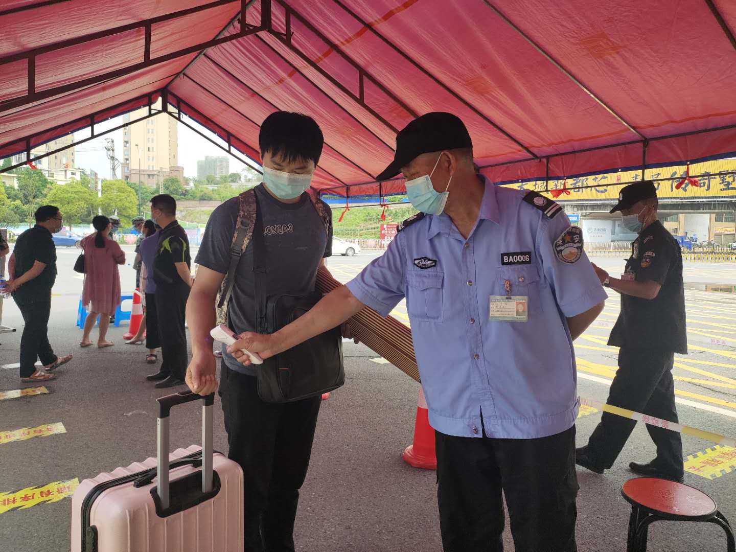在公司门口,返校员工按秩序排队间隔1米以上进行体温检测并通过扫二维码确认身份,体温正常并身份验证通过之后,由工作人员对其所携带的行李物品进行消毒后进入校园。员工进入校园后直接返回宿舍,在宿舍门口接受体温检测进入宿舍。