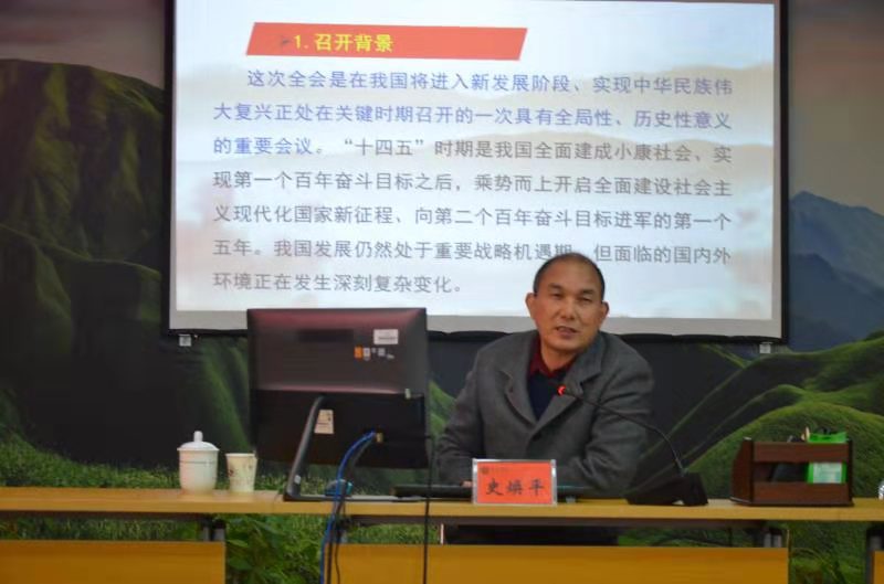 史焕平以“开启全面建设社会主义现代化国家新征程——十九届五中全会精神解读”为主题,围绕党的十九届五中全会召开的背景和主要成果、党的十九届五中全会主要精神、党的十九届五中全会精神的核心要义三个方面,对“十三五”时期我国发展取得的重大成就和成功经验、“十四五”时期经济社会发展目标和2035年远景目标以及一系列重要部署和重大举措进行了全面深入的解读。他运用了大量的数据和详实的事例为大家上了一堂精彩生动的党课,让大家享受了一顿丰盛的“精神大餐”。