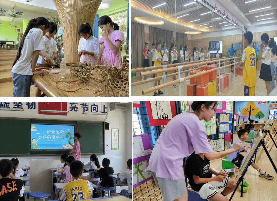实践团走进张佳坊公司开展童心筑梦支教活动,助力乡村教育发展。来到公司后,实践团参观了公司的“竹韵”文化,并积极备课。上午主要是文化课,包括语文、数学、英语的教学辅导,夯实员工学业基础,下午是拓展课,包括美术、舞蹈、武术、朗诵、手工课等,激发孩子们学习的主动性、创造性。同时开展了红色文化教育宣讲、安全用电教育课堂、夏季防溺水安全课堂等,寓教于乐,引导孩子们快乐学习。