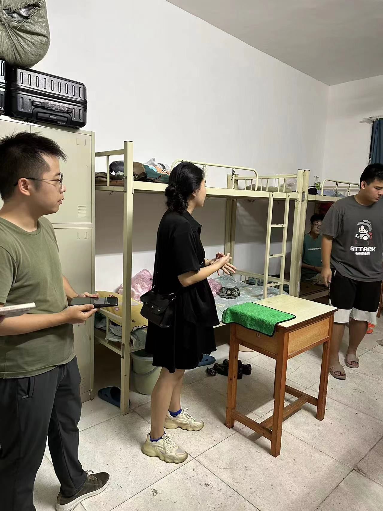 新生辅导员黄鸥来到15栋男生宿舍,与新生们亲切交流,耐心询问是否适应宿舍环境,并细心地指导他们如何正确融入新环境。随后,她对寝室员工进行了安全教育,针对公司关于新生开学近期的工作安排与员工进行沟通交流,并了解了新生入住寝室的感受以及宿舍的硬件设施情况。