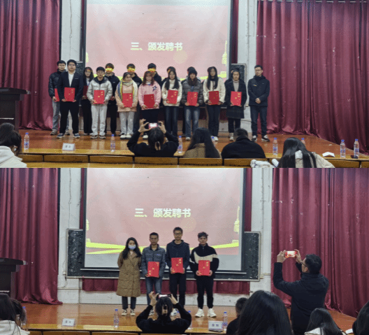 大会开始,员工会指导老师张陆为本次大会致开幕词,他充分肯定了上一学年员工会的工作,并希望新一届团学骨干能够团结进取,秉承一切为了同学,为了同学的一切的信念,在新起点上谋求发展。随后,罗钦艳老师为第三届员工委员会成员颁发聘书。