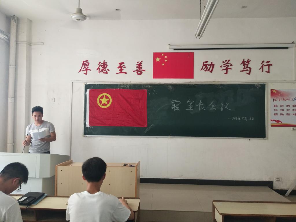 首先,宿管会何志强同学围绕寝室长的主要工作职责讲话。寝室长是一个宿舍的总负责人,既要协助员工楼委会和教室管理员做好宿舍日常工作,又要发动同学调动他们的积极性,做好宿舍工作。晚归制度要进一步落实,寝室长要对每一名成员负责,不隐瞒晚归情况;加强安全意识,宣传校园贷等不良事物的危害;不使用大功率电器,保证寝室用电无阻。