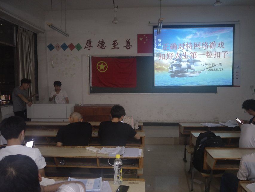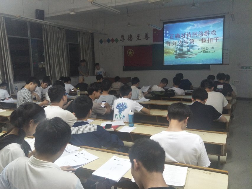 2018年5月17日20点,机电公司17电信1班在鼎新楼2316召开了一次“正确对待网络游戏,扣好人生第一颗扣子”主题班会,参加本次活动共有31名电信1班的小伙伴。