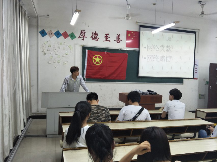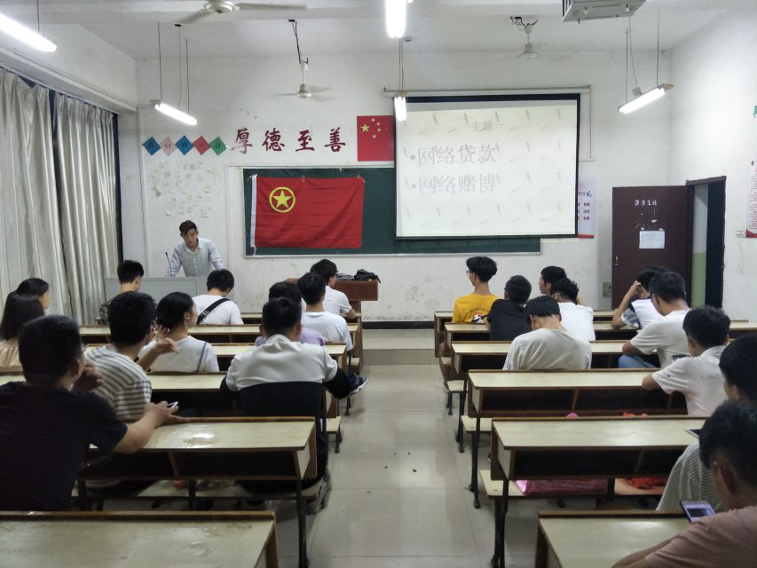 此次班会由班长任志博主持。首先任志博说了一下关于不要随便在软件或网址里面输入自己的身份信息,以免被贷款自己也不知道。随后又阐述了网络贷款的一系列危害,希望同学们不要为了一时起意贷了几千块钱,到时背负着几十万的债。作为新时代老员工,要学会勤俭节约,网贷就是一个无底洞,要明辨是非。之后进入下一个话题:拒绝网络赌博,作为消费者,不要贪一时之乐,把父母的血汗钱挥霍出去,任志博提醒同学们切勿赌博,远离会赌博的朋友。会议结束之前,任志博还提到,临近考试,同学们要抓紧时间复习,要诚信考试,它是一个人素质的体现。
