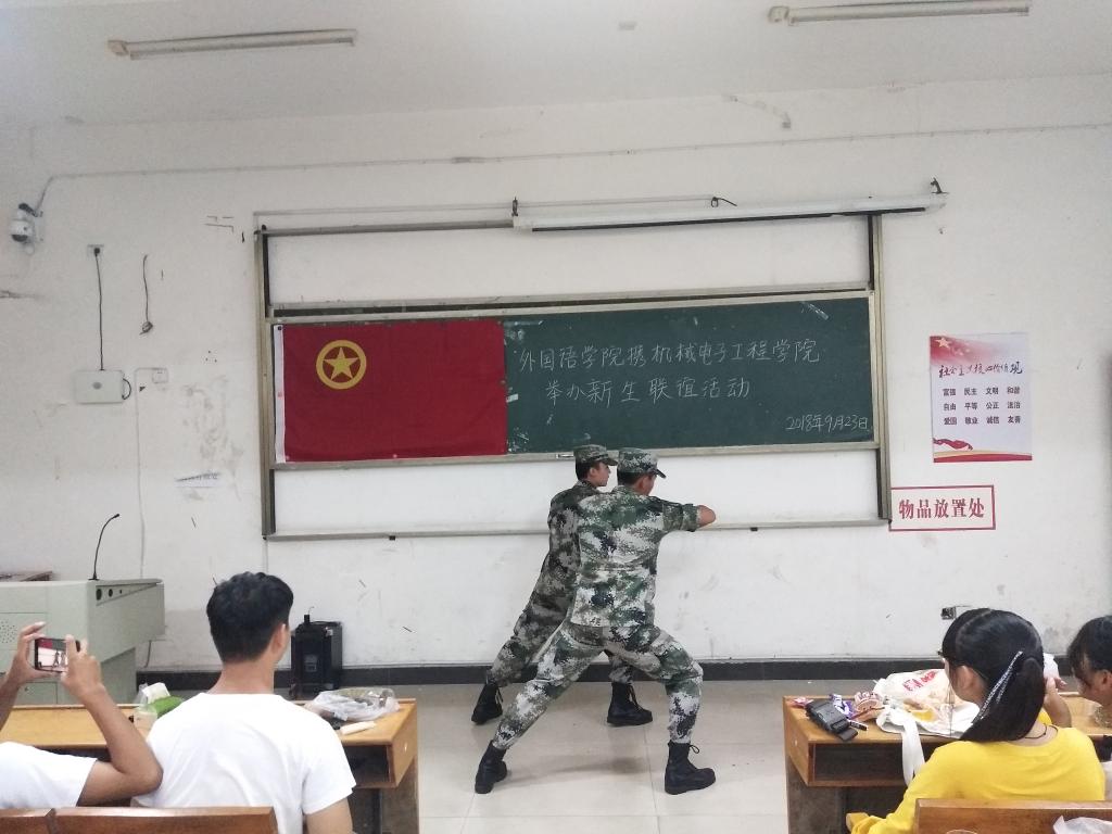 为丰富军训课余文化生活,增强员工集体荣誉感和凝聚力,2018年9月23日晚上,机电公司与外国语公司于3106、3206、3306教室进行新生军训联谊活动。