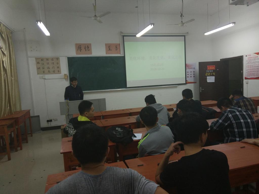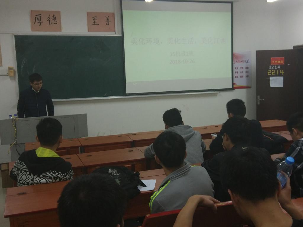 为使保护校园环境活动取得成效,树立崇高的理想,形成正确的人生价值观,15机设2班在2214召开美化环境与思想道德的主题班会。
