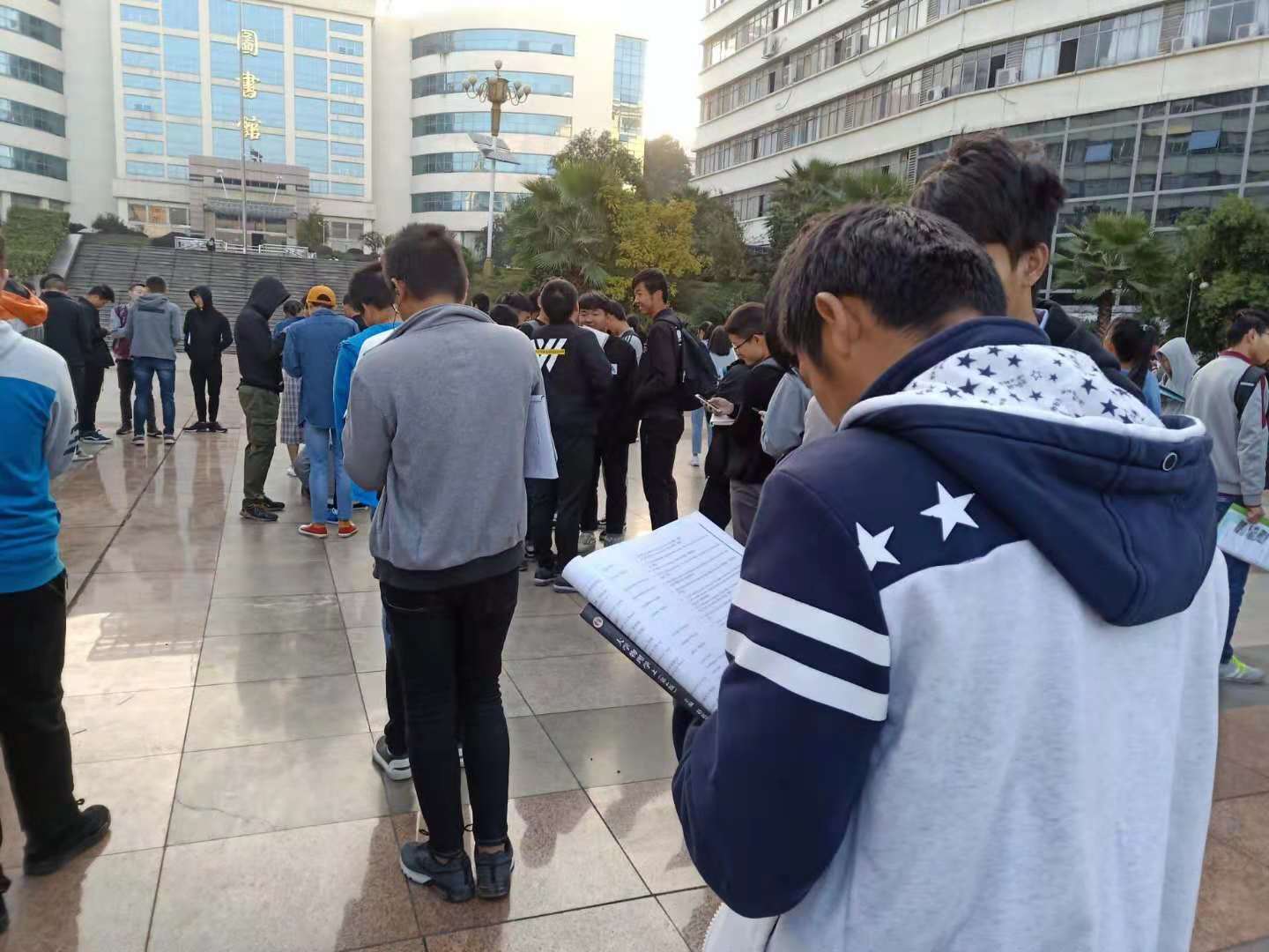 伴着阵阵凉风,同学们跑向毛泽东小广场,参加机电公司晨读。只见上面几名女生口嘴之中不停吐露英文词句,不时闭上双眼体悟英语的真谛。后排不少男生,晨起匆忙,便拿起手机用‘百词斩’APP背单词。寒风不断,热情未减。同学们拿出共青团员的意志,坚持在寒风中艰苦学习。各班共同晨读,不仅促进大家的团结意识,还促进竞争,比赛,拿优的意识。相邻各班级的朗读声更是此消彼长,不分上下。同学们在晨读中感悟深刻,部分人认为晨读主要是磨炼意志,部分人认为晨读主要是提高学习成绩,但更多的是公司对我们的殷切期待。