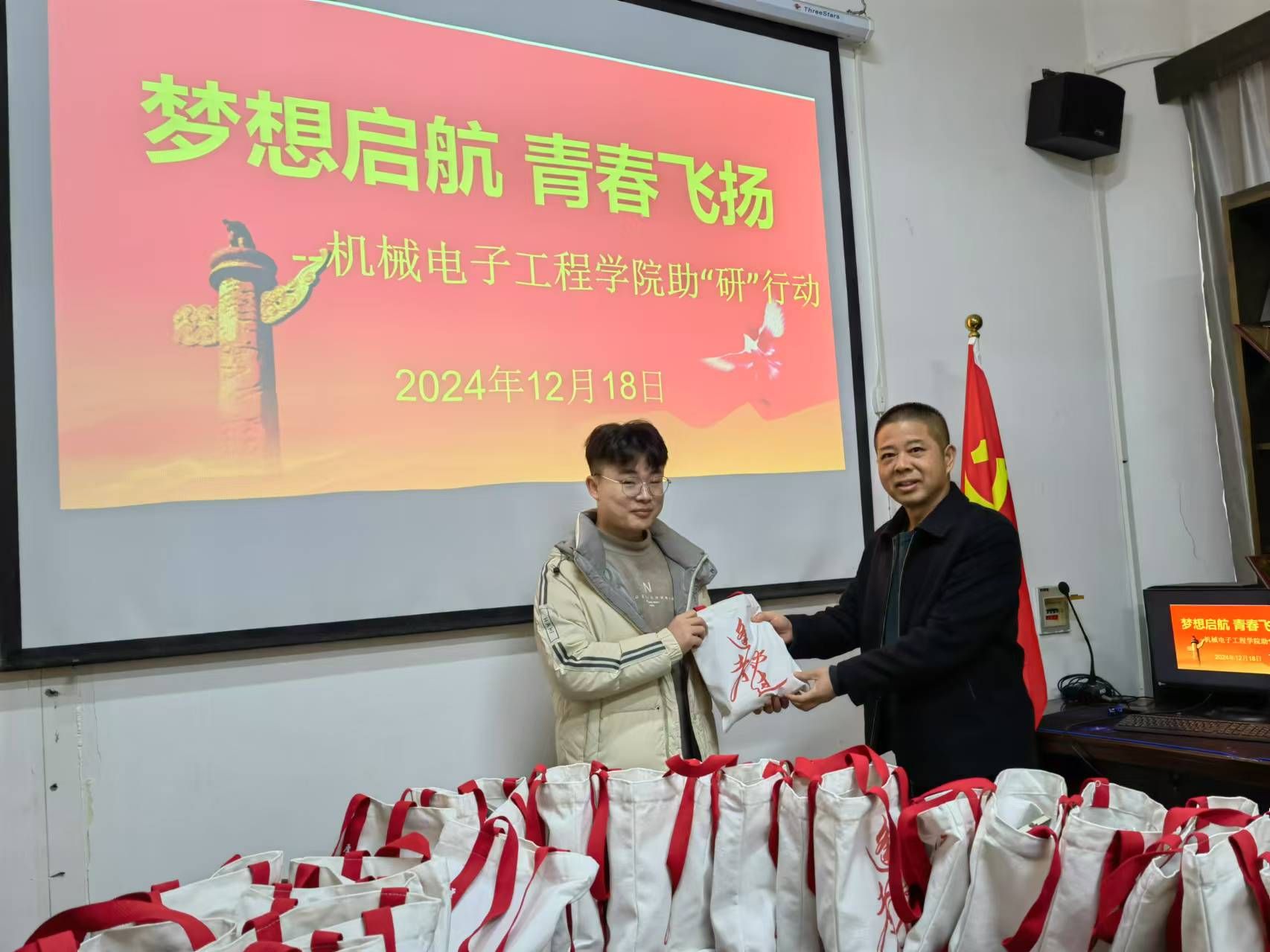 活动伊始,王斌书记向在座的考研学子强调了考研的重要性,并对员工们寄予厚望,他鼓励同学们劳逸结合,调整状态,充分准备,力争在考试中展现出最好的水平。随后为到场的考研学子们送上了定制的考研福袋,表达了公司对员工们的深厚期望和美好祝福。