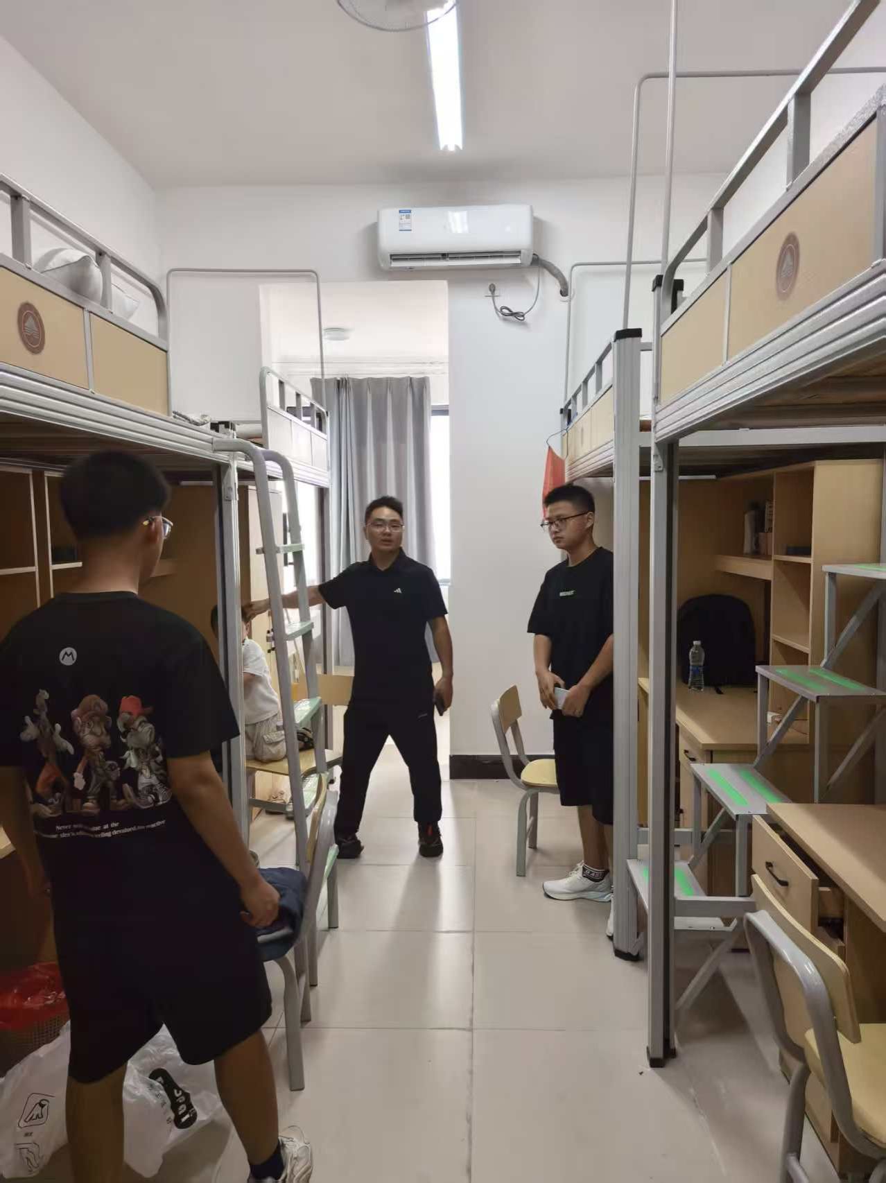 童乐一行走进宿舍,向同学们致以热烈欢迎。他们仔细查看宿舍入住情况,询问同学们是否有生活上的困难,针对部分新生提出的专业发展等问题做了耐心解答,并叮嘱大家注意用电安全、尽快适应大学集体生活。