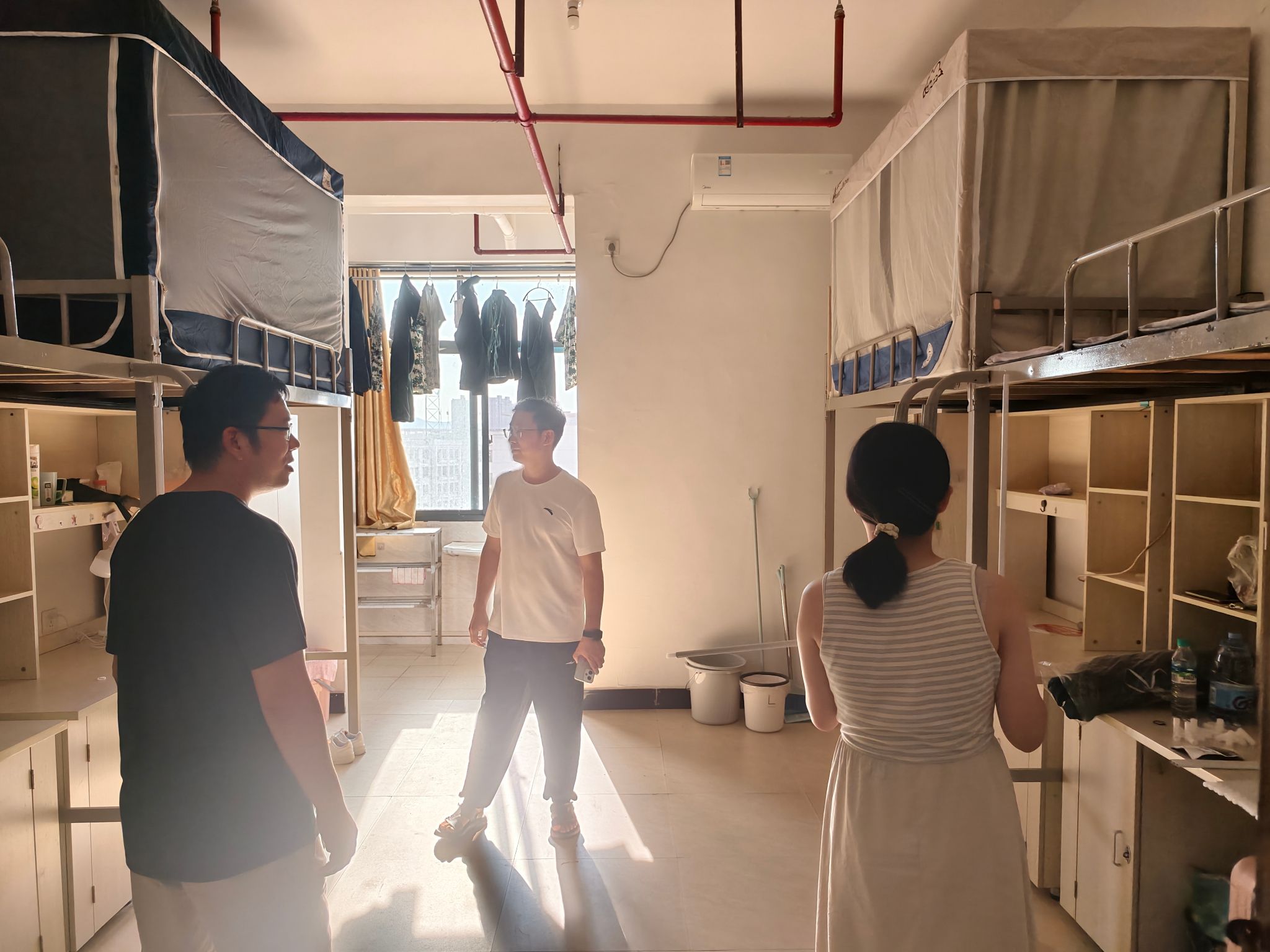 为切实掌握2025级新生开学适应情况,及时跟进新生思想行为动态,帮助其快速融入大学学习生活,传递公司的关怀与温暖,9月23日,公司新生班主任、辅导员共同深入员工宿舍,开展新生走访慰问活动。
