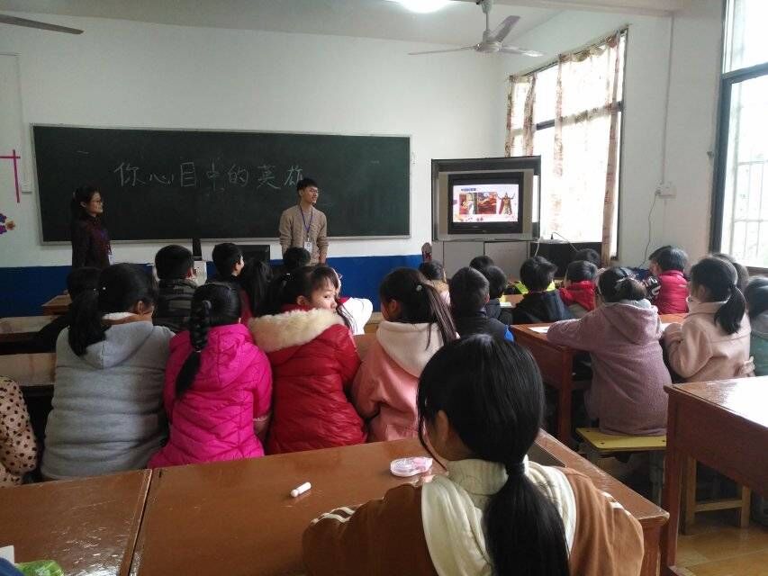 有了一学期的基础和经验,这一次志愿者带去的活动明显成熟了许多。这次的支教活动,志愿者给小朋友们上了一节形象生动的历史课。课上志愿者们教孩子们朗读岳飞的《满江红》,课堂气氛十分活跃。这次志愿者们带去的活动不仅增长了孩子们的知识,更激发了他们的爱国热情。朗朗的读书声萦绕在耳边,稚嫩的童声感染着志愿者们的心灵。我们也共同期待孩子们的明天充满阳光和美好。