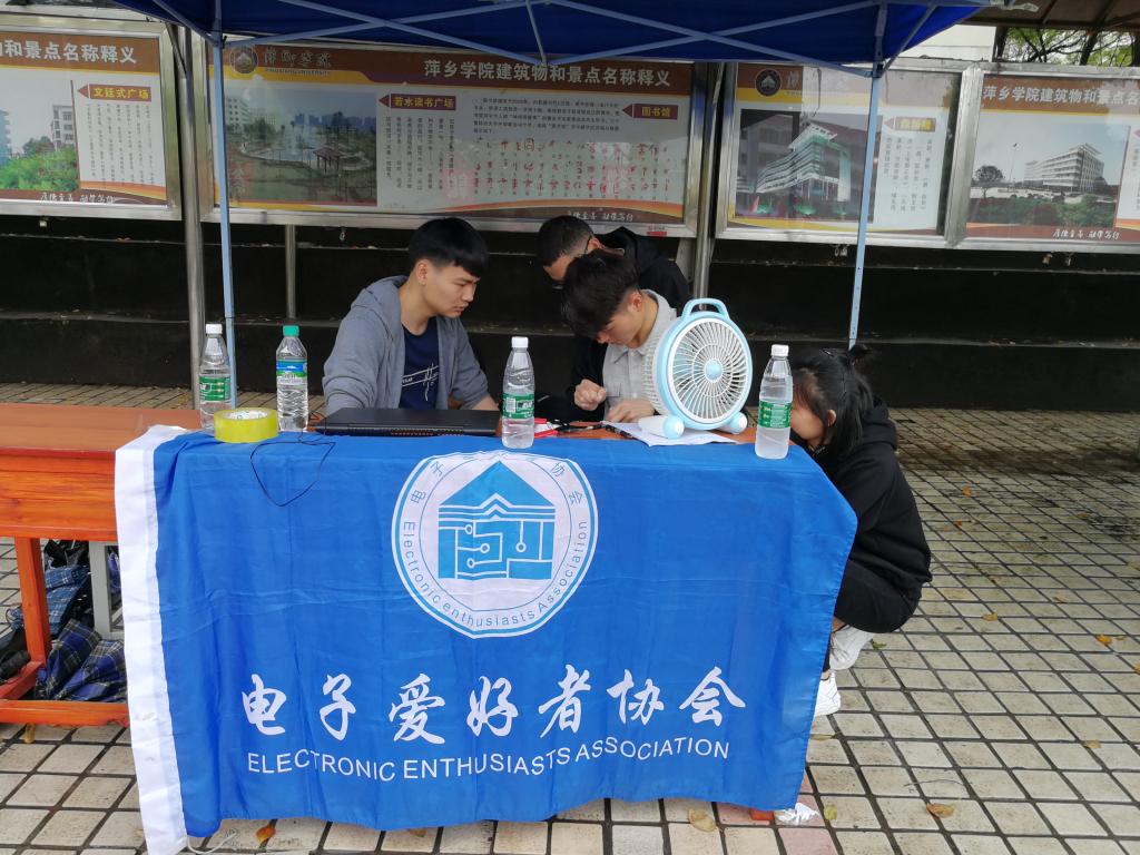 2019年4月13日上午,机电公司电子爱好者协会在中心小广场举办了以“技术出机电,义务维修行校园”为主题的义务维修活动,为全校师生免费维修各类小型电子产品,此次活动长达8小时。此次活动由电子协会会长带领协会成员参与。