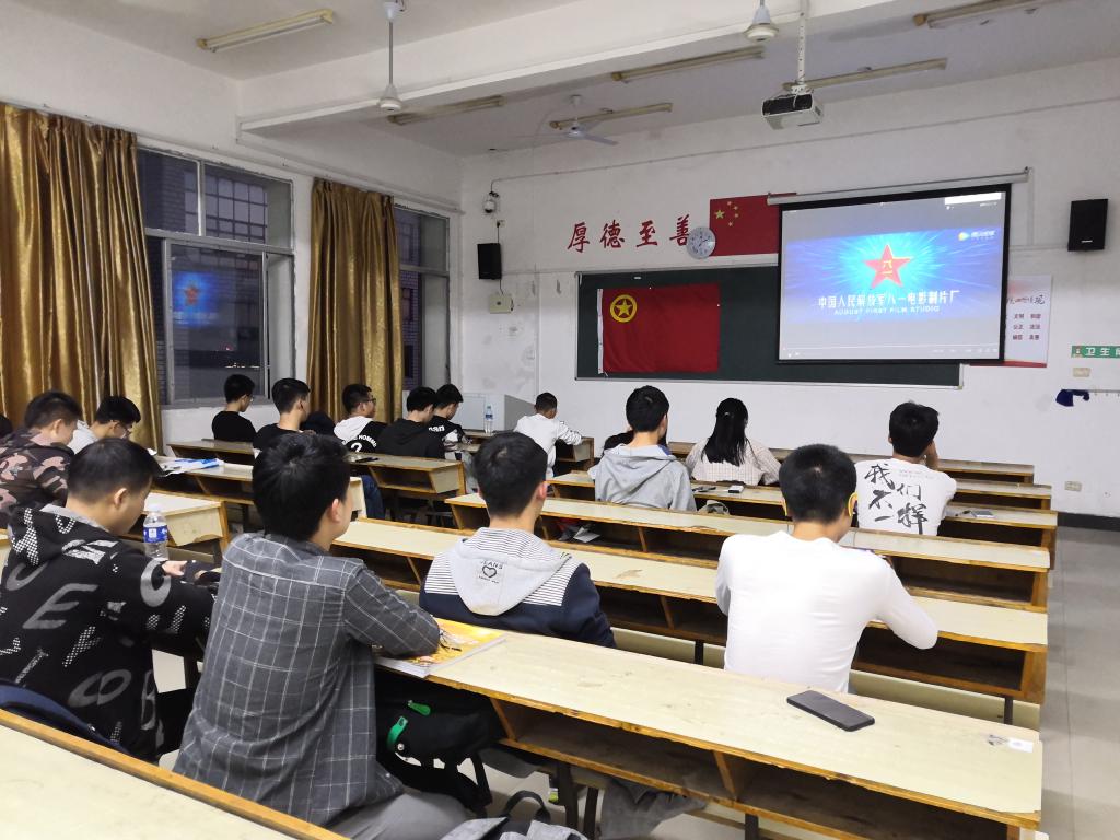 2019年4月17日晚上7点,机械电子工程公司18机设四班于英华楼3617观看爱国电影《建军大业》,本次活动由班长凌志文组织进行,参加人员为18机设四班全体成员。