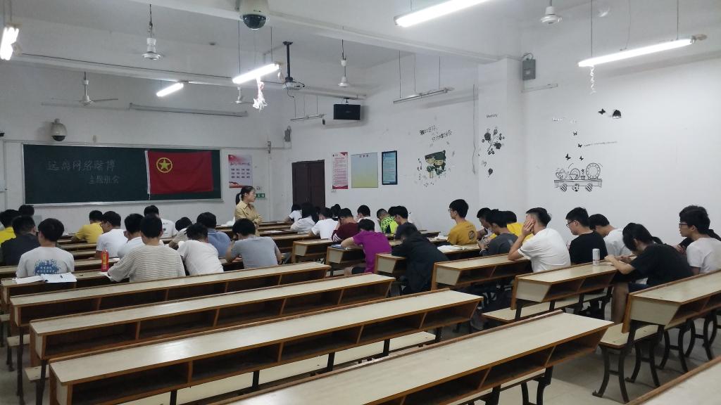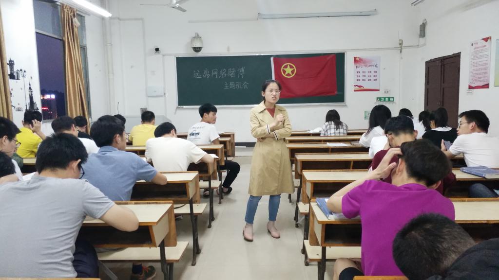 为了提高同学们的防范和财产安全意识,2019年5月22日晚19:20,机电公司17电信二班在鼎新楼2611教室组织了一场“远离网络赌博”为主题的交流会,主持本次交流会的是班主任邹彦娟老师,参加本次活动的有17电信二班全体同学。