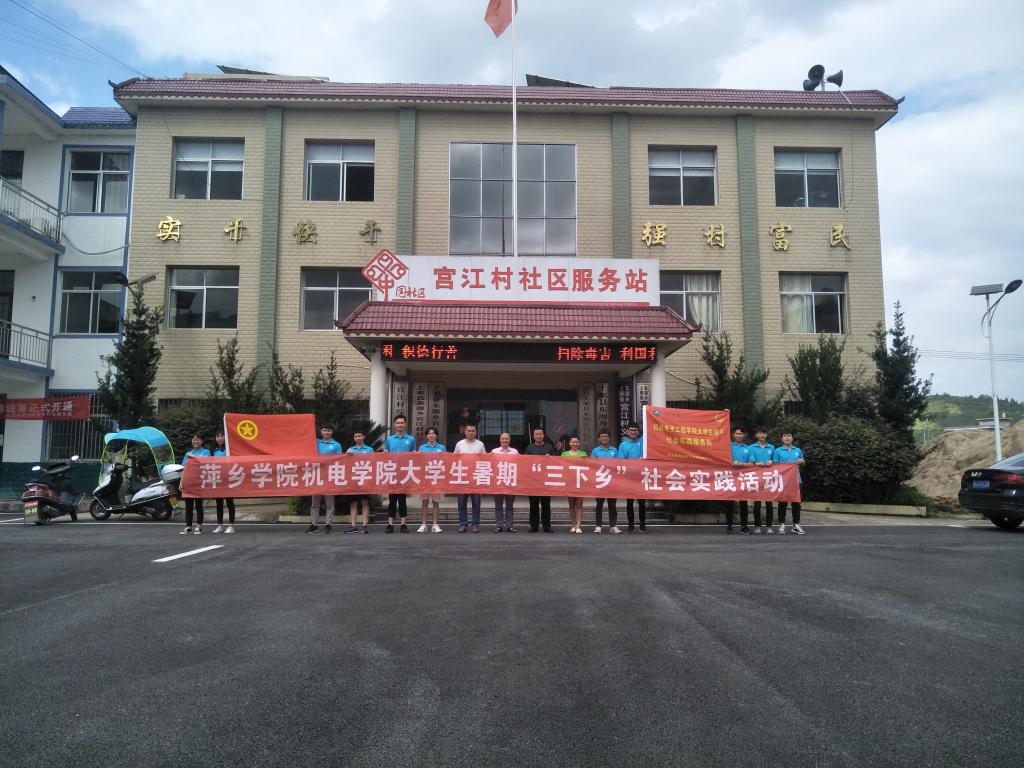 为深入学习习近平新时代中国特色社会主义思想,学习贯彻党的十九大和十九届二中、三中全会精神,引领教育广大青年员工增强“四个意识”、坚定“四个自信”、做到“两个维护”,在社会实践活动中受教育、长才干、做贡献,勇做担当民族复兴大任的时代新人。根据团组织的要求,伟德国际体育官网机电公司特组建一支暑期社会实践团队到萍乡市上栗县东源乡宫江村进行社会实践。