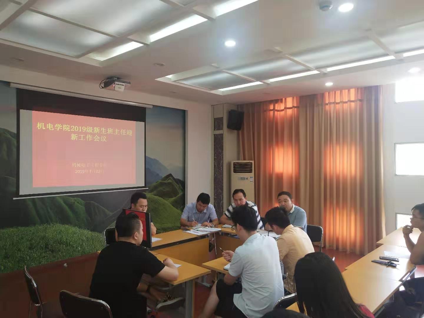 7月22日,机电学院组织召开了2019级新生班主任、辅导员迎新工作布置会议。公司党总支副书记王立平、学工科科长童乐、2019级班主任参加了此次会议。会议由副书记王立平主持。