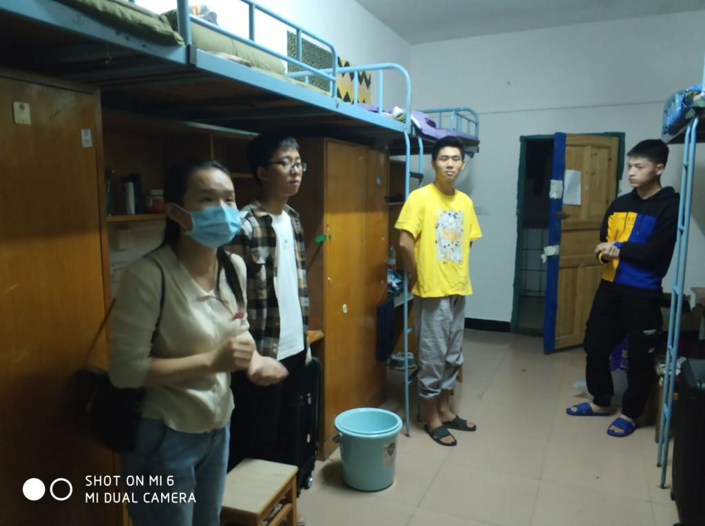 9月20日晚上,机电公司2020级机设1班班主任钟小倩到7栋走访探望了新生寝室,为同学们带来了关怀和慰问,并表达了对新同学们的期望和嘱托。