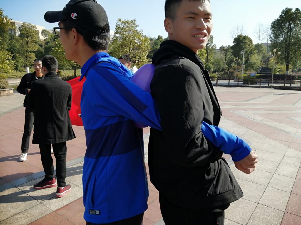 为了促进班集体中同学们之间感情,培养同学们的集体精神,2020年是11月15日上午十点半,19机设三班在若水广场开展了“心连心”心理健康素质拓展活动。